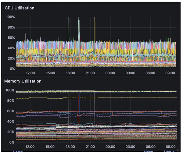 从 CPU、RAM 使用情况来看,坎昆测试分叉前后,资源使用率并未出现大幅波动,整体保持平稳。