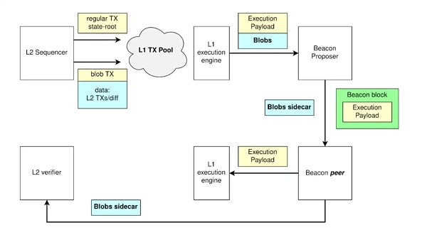 Proto-Danksharing 将会在以太坊区块中引入一种新的数据存储结构:blob。blob 将专门用于存储 L2 向 L1 提交的交易数据。