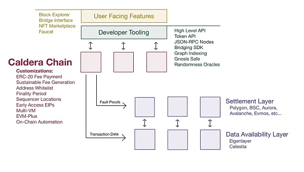 Caldera 是基于 OP Stack 搭建的 RaaS 服务提供商,支持以无代码的方式为用户快速地搭建起一条 Optimism L2。使用 Caldera 发行的 L2 能够实现完全的 EVM 兼容,能够极大地降低开发者的开发门槛,有利于直接复用现有的 EVM 生态项目,从而为 L2 提供更为完备的基础设施。除了 L2 本身,Caldera 还为用户配置了一系列的区块链基础设施,例如区块链浏览器、测试网水龙头等,从而进一步降低发链成本及使用门槛,即插即用。