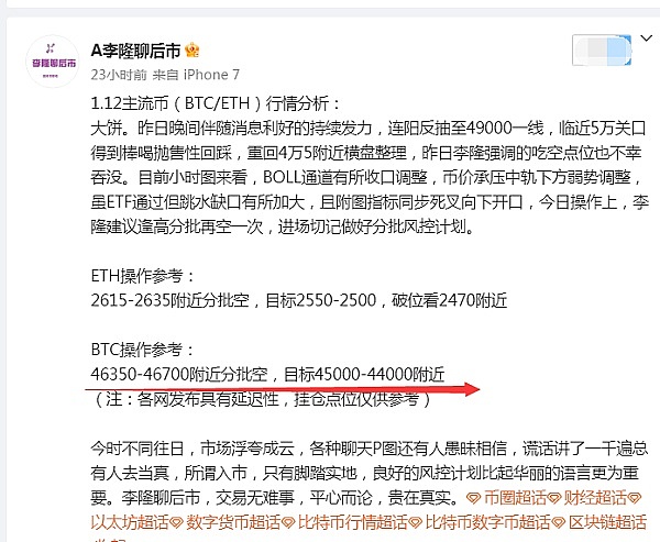 李隆:1.12主流币(BTC/ETH)大饼复盘