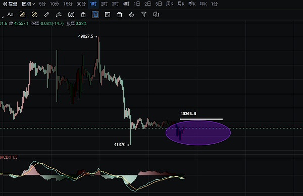 大饼。周末两日反复给到43000上方阶段吃空,每次触高惯性回撤,早间缺口更是跌至47100附近,盘中唱空思路也是屡屡精准了结。目前小时图来看,连日BOLL通道缩窄之后再次开口,而低点41700附近阴阳转换有所吞没,短期币价承压中轨下方弱势整理,但附图MACD有粘合金叉开口迹象,今日操作上,李隆建议小幅反弹接着空,大饼重点留意4万一线,进场切记做好分批风控计划。