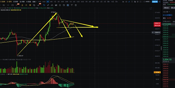 4小时线上看,以太的这波反弹后的下跌是没有到位的,只是走了一波小幅下跌,周线收线到2550下方,前面跟大家说过,周线收下来,以太压力就有效,行情就要开始走回调了,大趋势现在是空头,周末的行情也没有给到反弹,还试探了下跌低点2458位置,这样的走势说明空头还是强势,以太短线和长线上都是要准备开始走下跌了,如果是会反弹,前面试探2458后收针就该上去了,以太白盘压力关注2560,下跌目标先关注2458跌破,破位后2385-2305区间,自行把握进场机会;短线交易,控制风险,盈亏自理;