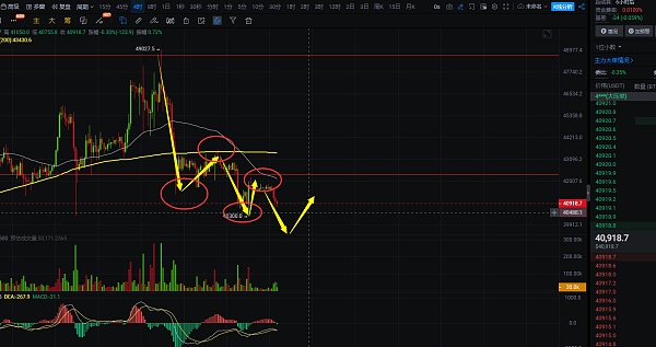 上周预计行情会下跌,周末大饼走横盘,以太还走出一点小幅下跌,基本上没啥波动,昨晚行情下跌,白盘大饼下跌低点在40658位置,还没有跌破40000,距离38500也还差一点距离,不过短线的下跌还是给到了;以太的白盘下跌低点在2394位置,上周预测下跌区间在2385-2310,达到区间附近了,虽然走的慢,但下跌的利润还是给到了,跟上周末战神布局的,虽然等待时间长,但只要结果是赚的就好,白盘验证下跌后,后市也就将跌跌不休了;