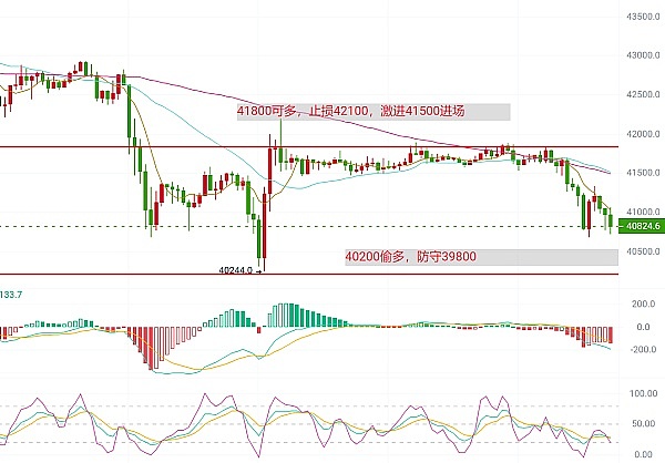 首先复盘一下前期的内容,上周五文章《币沐岩:1.19比特币区间打破 空单完美把握,以太坊追空大获全胜》中给到比特币上方41800-41500做空思路,以及下方40500做多思路,周五晚间行情启动,是非常符合个人预期的走势,这波跟上思路操作的朋友来回至少是2000+的利润。当前盘面可以看到,周六白盘以及周日,行情始终是处于高位横盘震荡,今日早间下撤1000点左右,这点也是符合我前期文章观点,行情还是走震荡下跌。当前比特币日线来看,MA7日均线向下,币价始终在MA7日均线下方运行,有触及下方MA90日均线支撑的迹象,四小时K线今日连续收阴,且收取带有下影线的阴线,说明短线下方还是有承接盘的,但是逆转不了空头的格局,短线思路做空为主,做多为辅,短线区间上方41800空单依旧有效,防守42100,激进41500进场;下方给到40200偷多,防守39800,多单逆向单,个人不太建议去做,实在想做可小仓偷一波,带好止损,破位要果断丢。