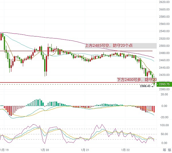 以太坊上期文章给到的思路是2495做空,目标2420;上周五晚间直播的时候又给到了2420多单的思路,周五晚间行情启动,到周六凌晨一个来回,跟上思路操作的朋友至少120+的利润。以太坊当前盘面可以看到,币价出现底部下移,今天最低是来到下方2395,整体下跌幅度较大饼要来的更快一些,日线来看M7日均线向下运行,四小时级别附图各指标均是空头迹象,短线思路上方2485可空,下方支撑看2400,做空为主,做多为辅,防守20个点。
