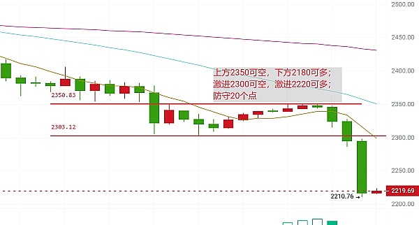 以太坊昨天给出2485做空,下方支撑看2400,以太昨天踏空。小时图K线上看,币价震荡下行,日线上连续收取实体阴线,昨天一根大实体阴线直接跌破MA30日均线,日内行情没能形成有效反弹,短线依旧看空,上方2350给到可空,激进2300进场;下方2220给到可多,激进2180进场,多单依旧是小仓位即可,防守控制在20个点。