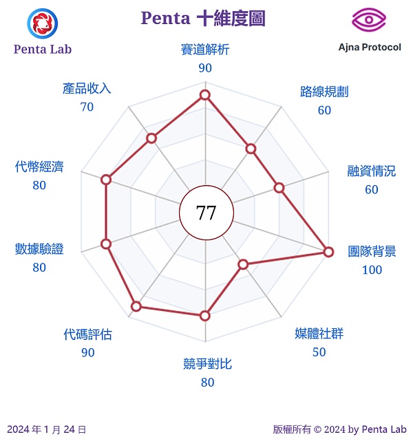 目标价:虽然目前Ajna的TVL刚过千万美元的门槛,但是平台在短短十三个交易日就成功将翻了十倍,增长潜力无限。我们同时研究发现Aave上缐六个月TVL从58百万美元一路飙升到13.5亿美元,考虑Ajna在消除预言机脆弱性的点对池借贷市场以及富有经验的管理团队,我们认为Ajna有机会在六个月内拿下Aave以及Compound10%的份额,对应8.8亿美元TVL预测规模,及AJNA代币价格为23.5美元。