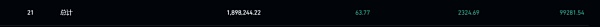 从数据上来看,目前24小时交易所流入大饼仅为63.7枚,7天内流入大饼为2324枚左右。30天流入大饼为99281枚。可以看到今天交易所流入大饼已经远远低于7天内平均值,说明市场内抛压已经变少,如果短期流入交易所大饼持续降低或者是变成负值,大饼的价格可能会因为抛压的减少继续上涨。