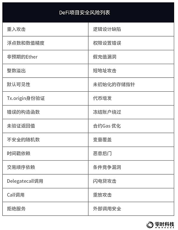 从安全审计角度看,DeFi项目面临的风险见下图: