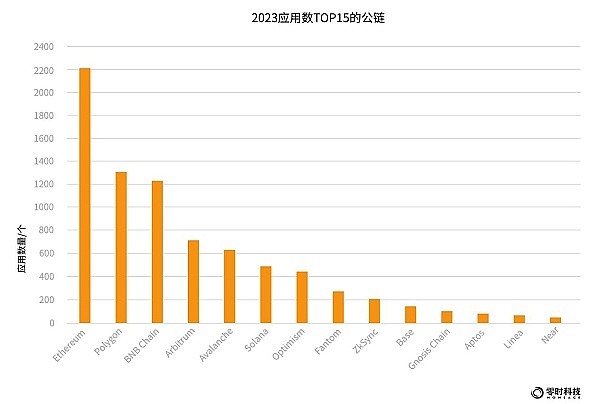 根据零时科技不完全统计数据,截至2023年12月,目前公链有194条。以公链生态应用数量来看,据rootdata数据,Ethereum,应用2203个,Polygon,应用数1301个,BNB Chian,应用数1239个,稳居前三,Solana、Avalanche、ICP等新公链紧追其后呈现快速增长趋势。