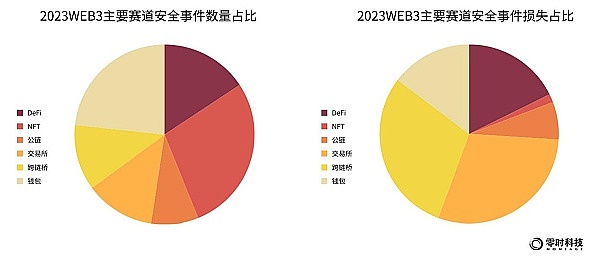 从主要赛道发生的安全事件数量来看,NFT安全事件最多,这和它成为2023业界追捧的热门赛道脱不开关系。另一方面,由于进入Web3行业人数的增多,钱包和DeFi成为安全事件的重灾区。从损失金额看,跨链桥位列第一,遭受损失最大。