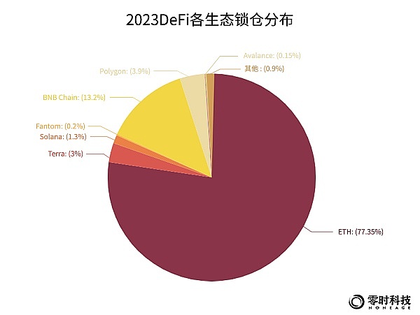 零时科技区块链安全威胁情报平台数据统计,截至2023年12月,DeFi项目共计1297个。据DeFi Llama 数据显示,DeFi 总锁仓价值达到390.51 亿美元规模。其中以太坊占比58.59%,以230.2亿美元的 TVL排名第一,其次是Tron,占比11.1%,以40.36亿美元的TVL排名第二,BSC紧追其后,占比10.47%,以40.12亿美元TVL排名第三。许多新兴公链如Avalanche、Ploygon、Optimism 等通过拥抱 DeFi 快速发展链上生态,也吸引了 大量用户和资金沉淀。