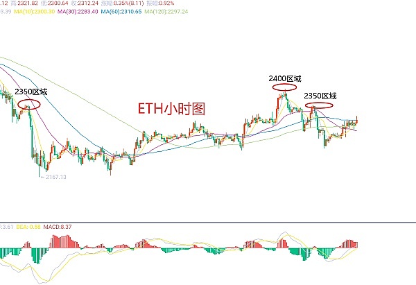 2月2日以太坊(ETH)合约技术面分析:今日方面,大周期日线级别昨日报收小阳线,K线形态上单阴单阳,附图指标死叉向下但动能在持续缩量运行,这样来说大周期的走势上短时间内内还是会震荡,价格上涨下跌的力度都不会很大,需要注意的是高点压力位置2400区域,,低点支撑位置2235区域;短周期小时图昨日早间下跌后日内支撑反弹今日早间延续,但价格没有向上破高,当前K线形态上连阴,附图指标金叉运行,所以欧盘强弱是重点,日内稳健先关注;因此今日ETH短线合约交易策略:反抽2350区域空,止损2375区域,目标看2300-2280区域