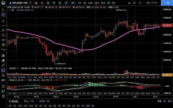 大饼昨日白盘波动不大,晚间行情回踩至42550附近后支撑反弹,一路上行最高触及43460附近受阻回落,恭喜跟上昨日思路的朋友多空双吃共计获利1200点,目前币价在43188附近运行,四小时级别行情仍是震荡走势,活动空间变窄,整体回到ma7均线附近运行,macd无量双线呈粘合状态,k线再次收上影阴线,有回踩需求预计空间不大,短期走势没什么变化震荡为主,周末走势缓慢波动不大,若能稳在日线ma7上方,则有再次走高的可能,短线的话依旧是围绕4w-4w5区间震荡,可围绕此区间高空低多操作,上方压制43300-43800,下方支撑42600-42200