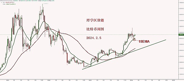这说明蜡烛图在15EMA均线上方还是有支撑作用的。