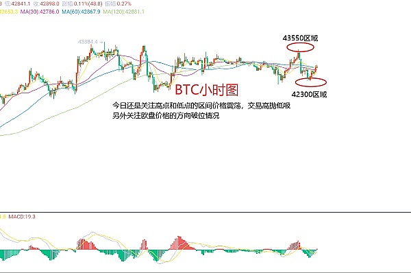 2月6日比特币(BTC)合约技术面分析:今日方面,大周期日线级别昨日报收小阳线,K线形态上单阴单阳,但价格在缓慢上涨,附图指标金叉运行,动能缩量,但下跌当前来说看不到延续和力度,所以后市大概率的走势还是以震荡为主;短周期小时图昨日日内上涨没有破高,美盘承压下跌,高点43550区域附近,早间价格支撑反弹低点42300附近,当前K线形态连阳,附图指标金叉运行,这样来看日内还是有上涨的需求,重点在于欧盘能否破高了,因此今日BTC短线合约交易策略:反抽43550区域空,止损43800区域,目标看42800-42600区域,回撤42600区域多,止损42250区域,目标看43200-43500区域;