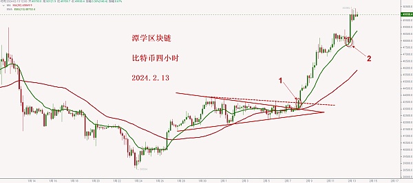 那么在四小时上,也不是没有多头形态。比如在四小时图的位置1也是有形态的。