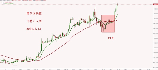 但是我们希望能够按照计划等天图均线金叉,所以稳健保守地等了一下,最后比特币直接拔地而起,基本上不再回头。