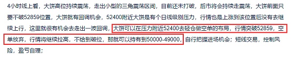 昨日预测行情会有回调走出,晚间大饼回调前走出一波拉升,刚好破52859高点到53074位置,到达后收针,最低下跌低点在50733位置,空单有点可惜被扫,以太也是给到拉升到3035位置,也是破了3000高点位置,短线空单轻仓做布局的被止损离场,但行情并未走出持续拉升,短线压力依旧存在,日内交易还是可以围绕这一短线压力去做空单的布局;