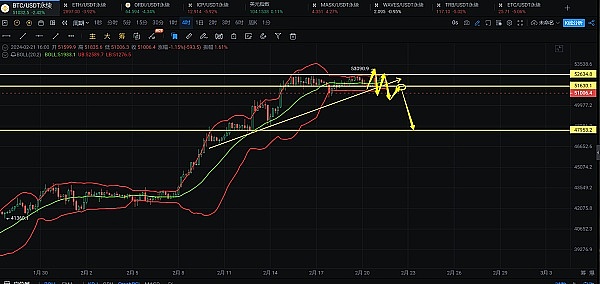 BTC参考策略:反弹51600附近继续做空,止盈48000,止损52150