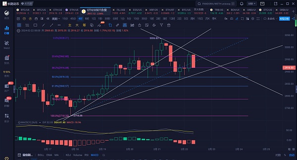 长路说币:2.22以太坊多次测试3000大关并未顺利站稳,白盘回踩再进多