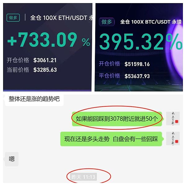 最近几天长路在文中和实时策略中都给出了白盘会有回踩,晚盘大涨的走势分析,昨天长路在文中也有讲到有可能会去冲击以太坊斐波那契回撤线0.618处3355附近的压制,实时策略也给出了回踩3078附近做多,回撤3040补多的策略,跟上操作的朋友,这波多单吃到饱。
