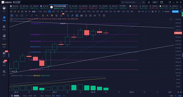 以太坊在上个交易日走出3290高点后,白盘开始回踩,最低跌至3202低点,晚盘再次反弹3290高点并未走出新高凌晨的一波回踩再次触及3205附近再次反弹3260一线压制,现行情位于3230附近震荡。