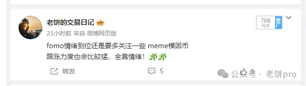 大饼拉菲高位横盘之后其他的板块币种也开始轮番补涨,昨天刚在微博说的关注meme模因币板块,今天还在强势上涨,表现非常不错!