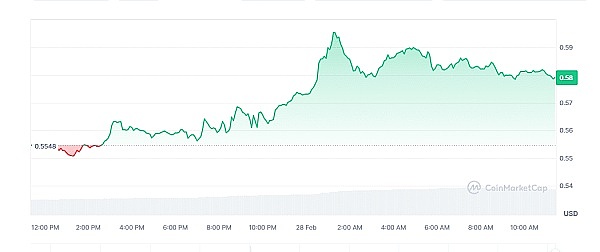 XRP 价格本周上涨超过 5%,大幅上涨发生在 2 月 27 日,当时它突破了该代币的平均价格 0.5 美元。目前,XRP 交易价格为 0.5792 美元,较昨日上涨 4.41%。