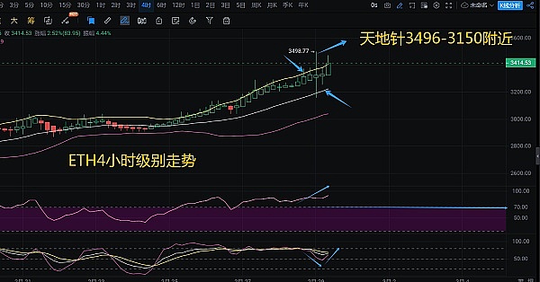 ETH短线稳健点的多头进场范围可以放到下方3355-3340,止盈看到上方3427-3465