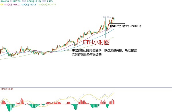 2月29日以太坊(ETH)合约技术面分析:今日方面,大周期日线级别昨日报收中阳线,K线形态连阳上涨,价格在均线上涨,附图指标金叉运行,回撤支撑位置在3275区域,基本走势的强势自然是不用再去强调了,但是回撤的风险还是要注意就像凌晨的过山车走势,如果你不做风险控制,那么你前面哪怕赚了10单,这一单就能让你一分没有,这是没办法预测的,有的朋友说抗,低点3155区域,高点3500区域,你怎么抗?;短周期小时图当前价格在高位震荡,日内修正低点在3390区域,所以今日做多要以这个位置做防守,因此今日ETH短线合约交易策略:回撤3425区域多,止损3389区域,慕白哦看3490-3500区域