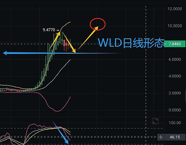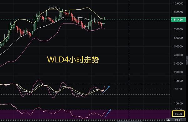 WLD短线合约参考:下方回踩7.65-7.4范围进场多头 止盈看到上方8.2--8.7