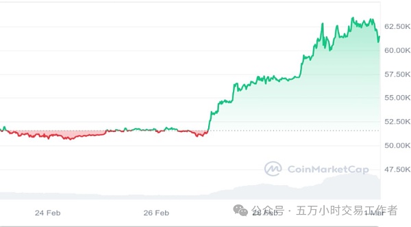 截至 目前,BTC交易价格为 61477 美元,个人认为在不久的将来会小幅上涨,预计3 月 5 日,比特币可能会达到 64,163 美元,涨幅为 2.43%这些很可能就是很缓慢的上升,不会在像之前一样那样的大幅度的拉升