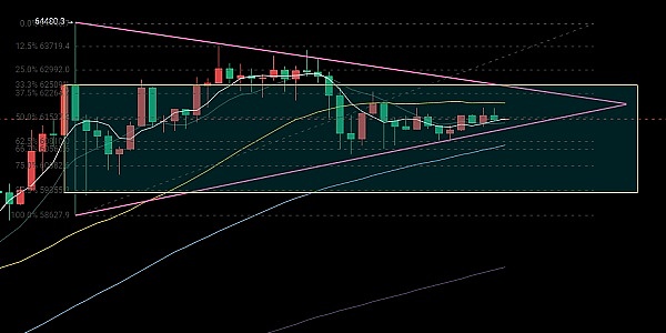 昨日比特币分别于下午和晚间再次俯冲试探高点,但是两次均失败落幕,晚间的再次试探最终在凌晨回踩至斐波那契0.66的位置,这么位置也是六万关口便于,暂时偃旗息鼓,今天总体就是震荡