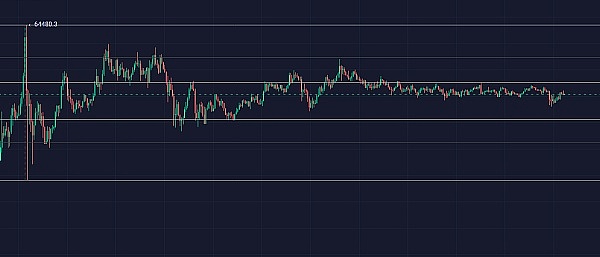 2月29日比特币冲击至最高64480后,有资金砸盘,使价格瞬间下跌9%,造成了18万用户爆仓。那么在64480至58630之间就形成了非常强的支撑和阻力。价格将会在这个区间内长时间整理,以消耗获利盘和套牢盘。