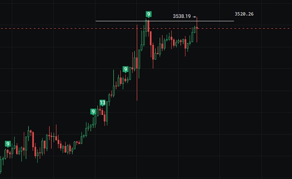 3月13号以太坊(ETH)坎昆升级即将来临,ETH属于上涨趋势,短线的回调影响不了大的趋势,所以短线就算回调幅度也不会太大,所以这个位置不能做空,做空的风险很大。