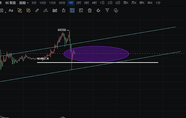 回踩61000-62500附近分批多,目标64500-65200附近