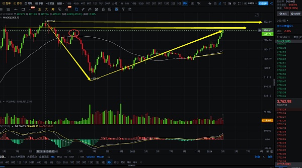 周线图上看,以太走势虽然没有破高点,但多头也是 比较猛的,以太的上方还是看得到压力的,下个到达点位在4050附近,距离现价还有300点左右,昨晚以太下跌后日线收十字星,以太白盘的走势是基本上已经要突破十字星了,这样的走势上看,以太日内还是会继续去走反弹,下个点位预计就是在4050附近,交易上直接去追涨都能有不错的利润,现在想去等大一点的回调机会是不多了,可直接追涨,目标就先看4050附近,然后关注大饼69350高点破位情况决定是否持有到历史高点上方,自行把握进场机会;短线交易,控制风险,盈亏自理;