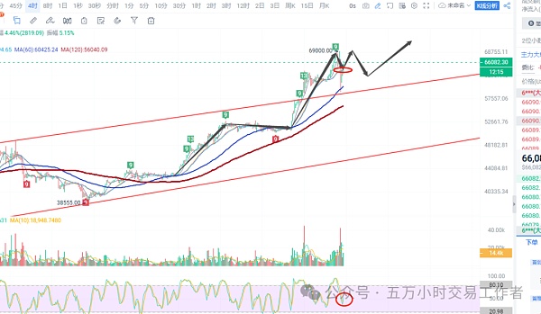 从盘面来看BTC有从新货到66000美元的区间上方,目前着重关注一下下方61150美元这个支撑位