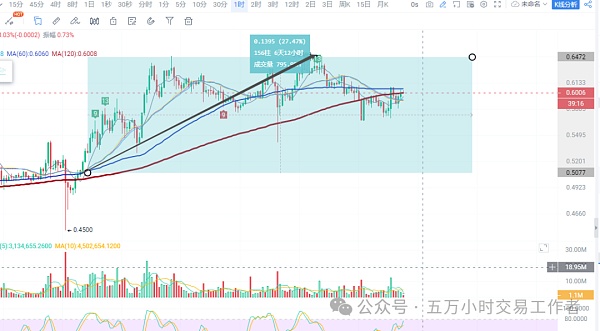 1INCH现价0.61美元回调至0.53布局现货3层仓,激进的可以现价布局,预期涨幅50%