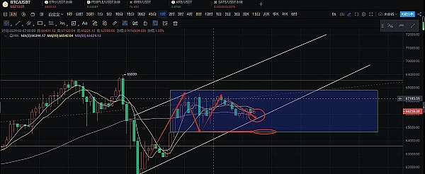 BTC同样是经历了一波万元的洗盘,大饼目前的看点按照走势来讲支撑点位可以看下64500-65000区间一线,按照目前的走势这个区间值只要插针达到就可以进场,短期内还是会在这个区间内进行一个洗盘调整。进场点需要耐心的等待,拿到一个好的位置才能有更多的利润空间。