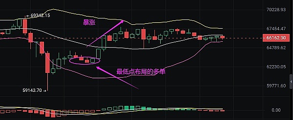 小神说币:恭喜 比特币在最低点62934布局的多单 完美拿下1100个点 给力