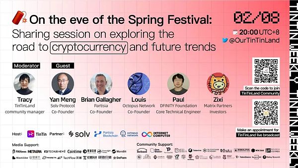 香港时间 2 月 8 日晚 8 点 ,由 TinTin 主办,以《春节前夕:探索加密货币之路与未来趋势分享会 》为主题,对龙年的 Crypto 发展趋势进行了探讨。