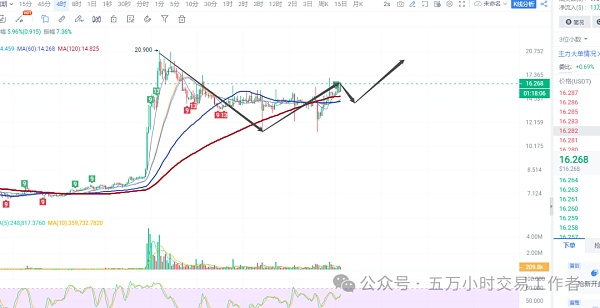 建议15.5附近考虑进场目标前高,也就是34%左右的涨幅