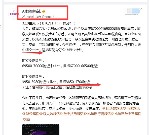 李隆:3.11主流币(BTC/ETH)以太复盘回顾