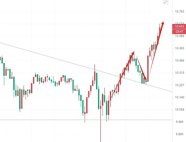 短线思路建议可以逢高做空,逢低做多,毕竟耐得住寂寞才能守得住繁华,再加上现在这个位置拉伸的比较快,上方关注10.95附近不破在布局,下方关注10.05附近不破同样布局即可,行情瞬息万变,勿贪,具体操作以实时策略为主,分析主做参考,风险自担