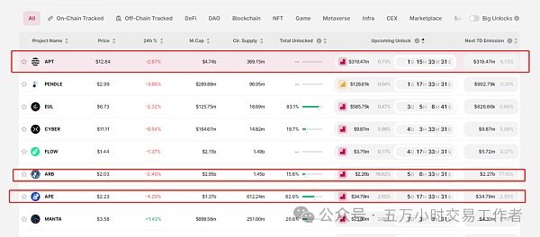 本周ARB、APT和APE等代币将迎来一次性大额解锁 总计释放价值26.3亿美元