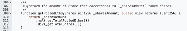 可以看到最终返回的结果是用地址中 sharesAmount 乘以 _getTotalPooledEther() 再除 _getTotalShares。