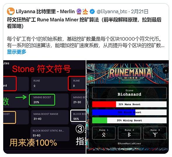 2024年2月21日,Lilyanna 比特里里发文对 Rune Mania Miner 挖矿算法进行去全面讲解。