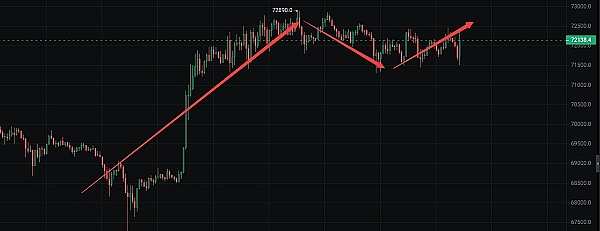 日线级别:方向向上,日线很有可能去75000上方